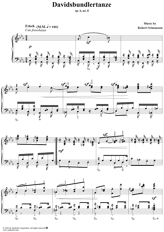 Digital Sheet Music for Davidsbündlertänze, Op. 6, No. 08 (2nd Edition, 1850) by Robert Schumann scored for Piano Solo; id:258485