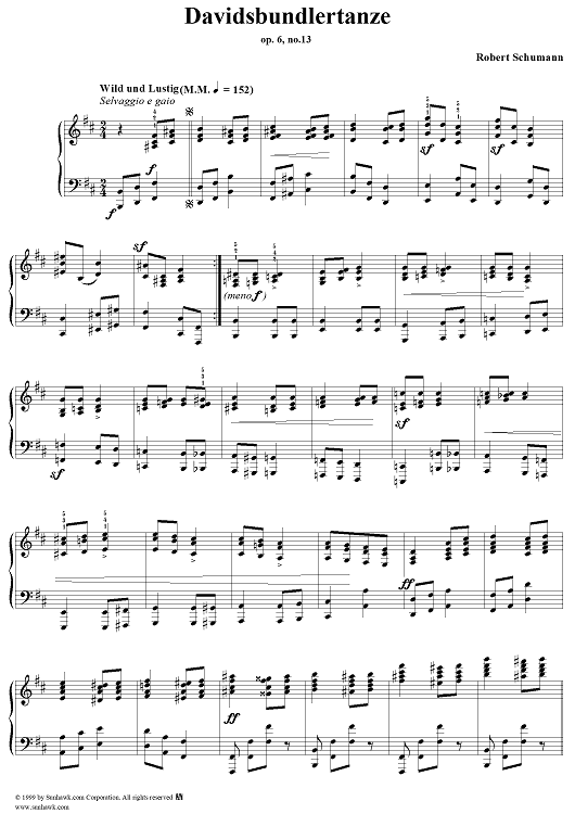 Digital Sheet Music for Davidsbündlertänze, Op. 6, No. 13 (2nd Edition, 1850) by Robert Schumann scored for Piano Solo; id:258179