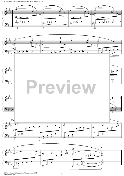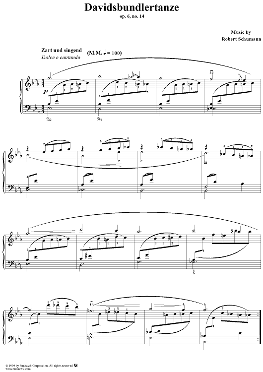 Digital Sheet Music for Davidsbündlertänze, Op. 6, No. 14 (2nd Edition, 1850) by Robert Schumann scored for Piano Solo; id:258180