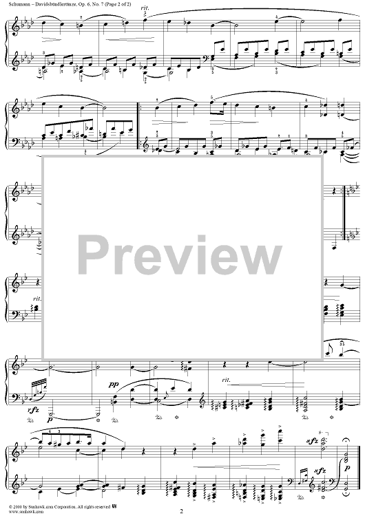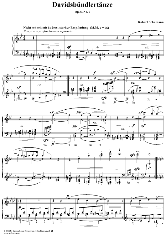 Digital Sheet Music for Davidsbündlertänze, op. 6, no. 7: ("Nicht Schnell") by Robert Schumann scored for Piano Solo; id:241713