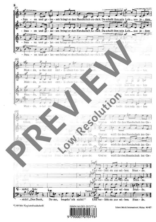 Digital Sheet Music for Der Handschuh - Choral Score by Robert Schumann scored for Mixed Choir (satb); id:479421