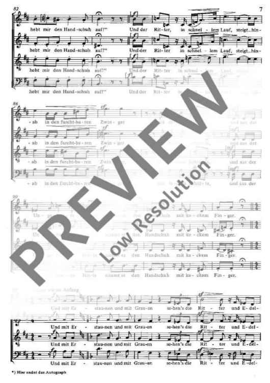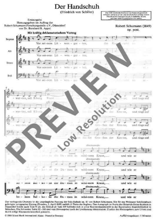 "Der Handschuh - Choral Score" Sheet Music by Robert Schumann