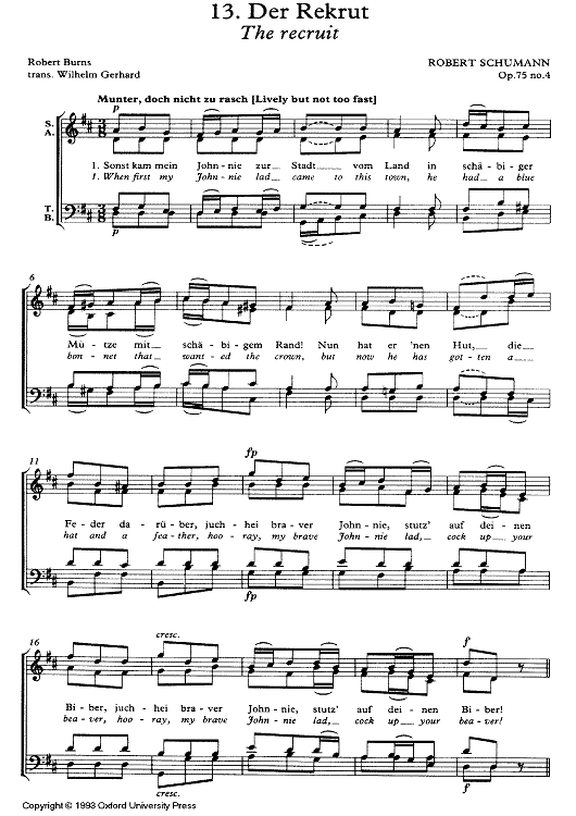 Digital Sheet Music for Der Rekrut Op.75 No. 4 by Robert Schumann scored for SATB Choir; id:336803