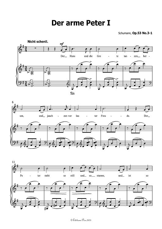 "Die arme Peter I", Op. 53, No. 3-1, in G Major, for Voice and Piano
