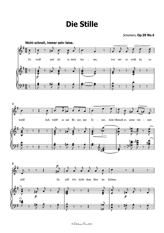 "Die Stille", Op. 39, No. 4, in G Major, for Voice and Piano