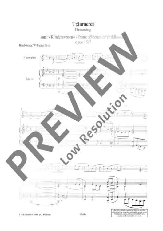 The 19th century was not only the era of great forms, monumental symphonies and melodious sonatas, no, the Romantic composers proved to be versatile and highly imaginative on the field of little music pieces as well. Robert Schumann was a master of the character piece for "his" instrument, the piano. From thirty of such poetic miniatures, he selected thirteen in 1838 for his 'Scenes of Childhood', opus 15, the seventh, i.e. the one right in the middle, being 'Dreaming', the most famous among Schumann's compositions. It is a romantic gem the catchy melody of which will not get out of one's head. The beautiful setting contained in the present edition can be played even by non-pianists.