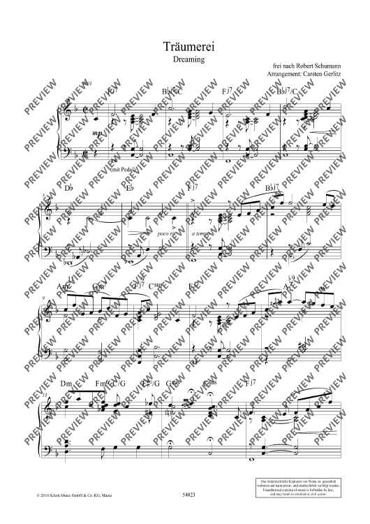 Digital Sheet Music for Dreaming by Robert Schumann, Carsten Gerlitz scored for Piano; id:485381