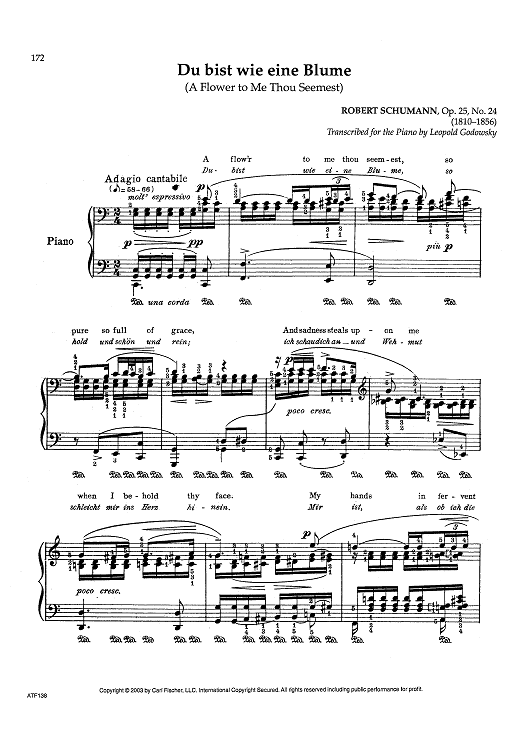 Digital Sheet Music for Du bist wie eine Blume (A Flower to Me Thou Seemest) by Robert Schumann, Leopold Godowsky scored for Piano Solo; id:439543