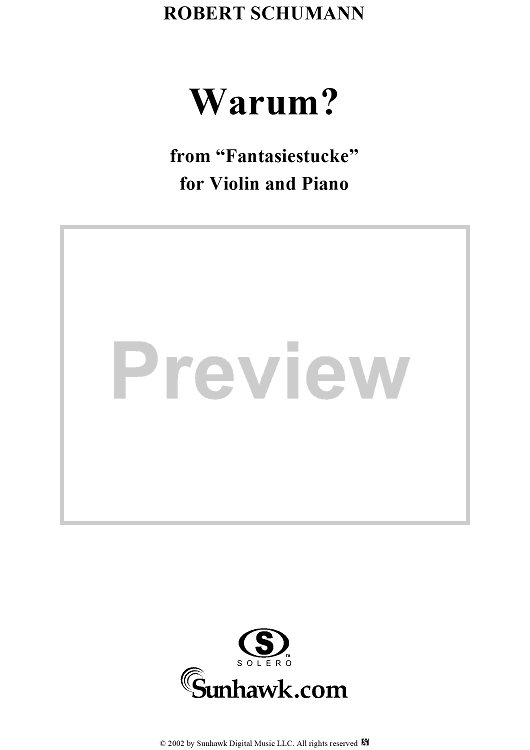 Digital Sheet Music for Fantasiestücke, Op. 12, No. 3, "Warum" (Why) - Piano by Hans Sitt, Robert Schumann scored for Violin/Piano; id:258575