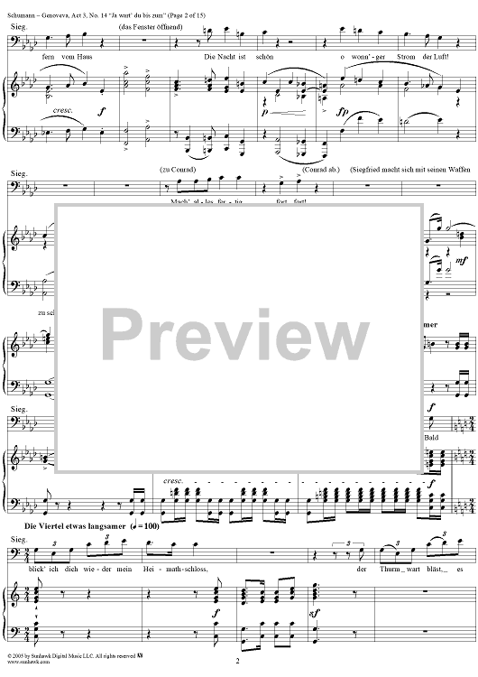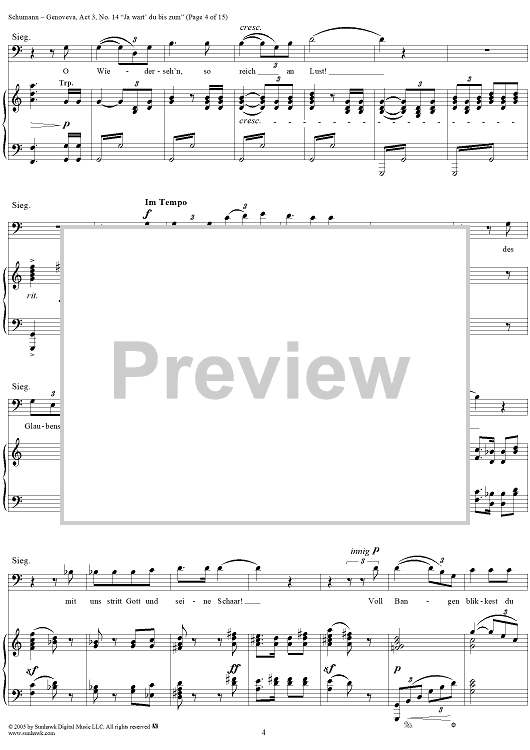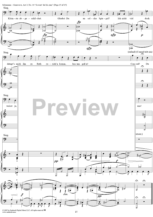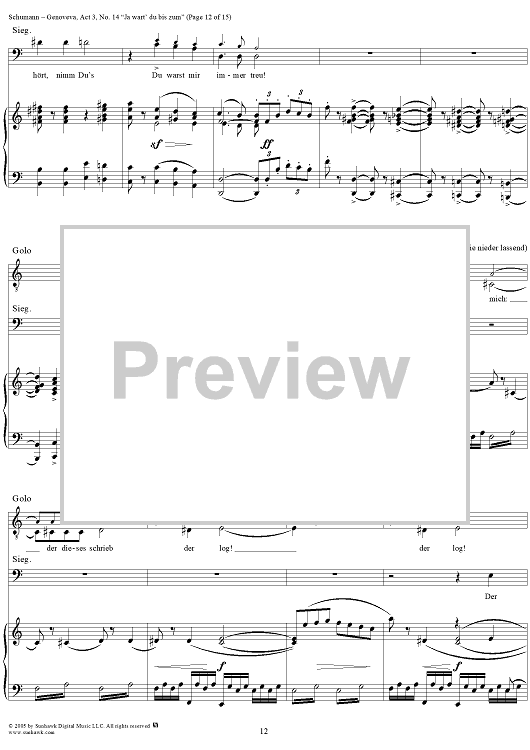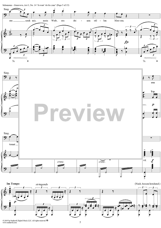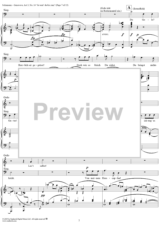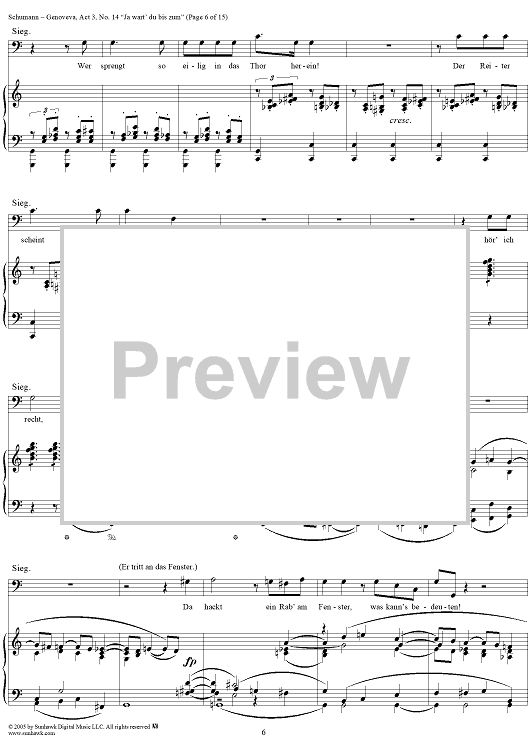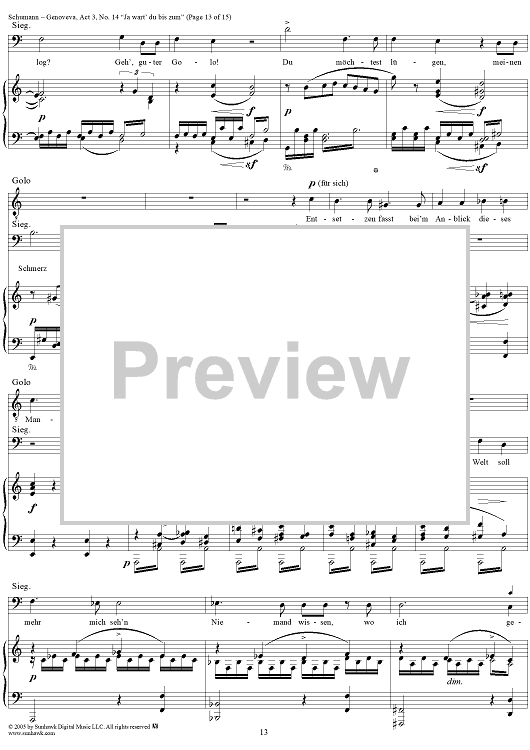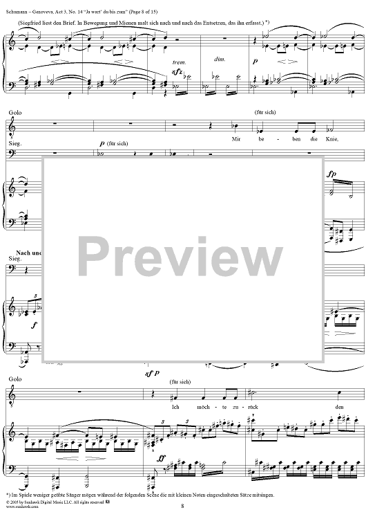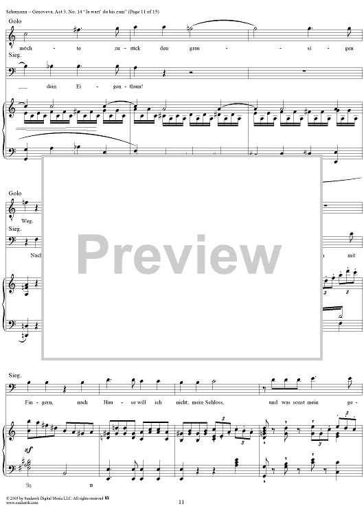 Digital Sheet Music for Genoveva, Op. 81, Act 3, No. 14: "Ja wart du bis zum" - Score by Robert Schumann scored for Voice/Piano; id:304875