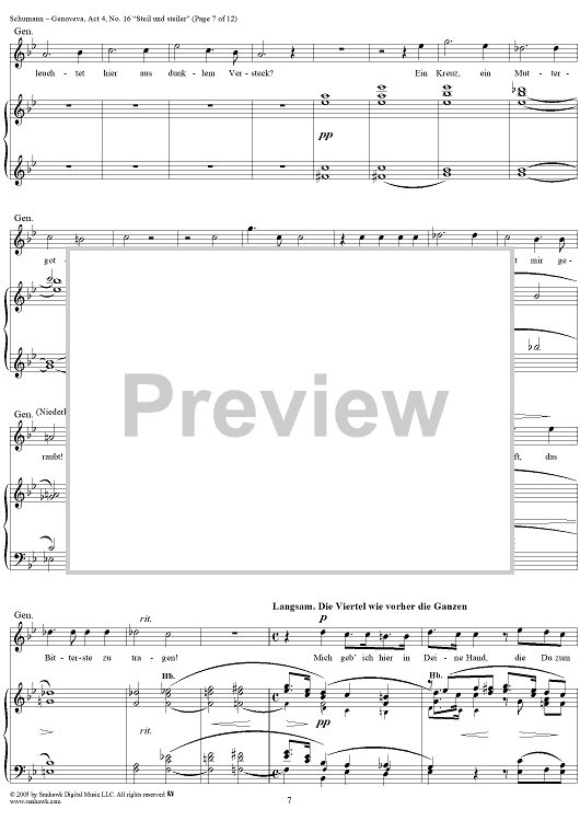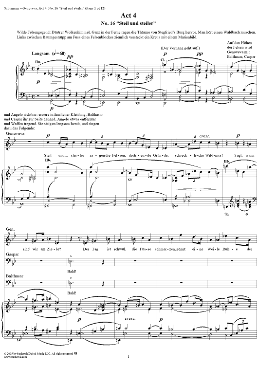 Digital Sheet Music for Genoveva, Op. 81, Act 4, No. 16: "Steil und steiler" - Score by Robert Schumann scored for Voice/Piano; id:304877