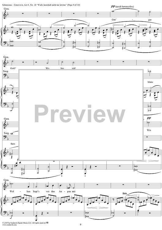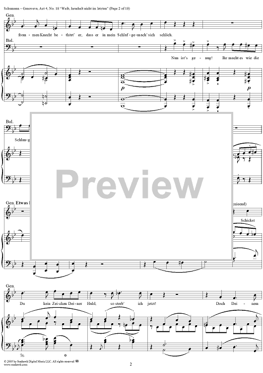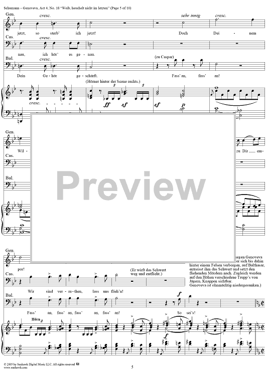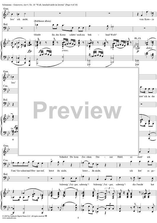 Digital Sheet Music for Genoveva, Op. 81, Act 4, No. 18: "Weib, heuchelt nicht im letzten" - Score by Robert Schumann scored for Voice/Piano; id:304879