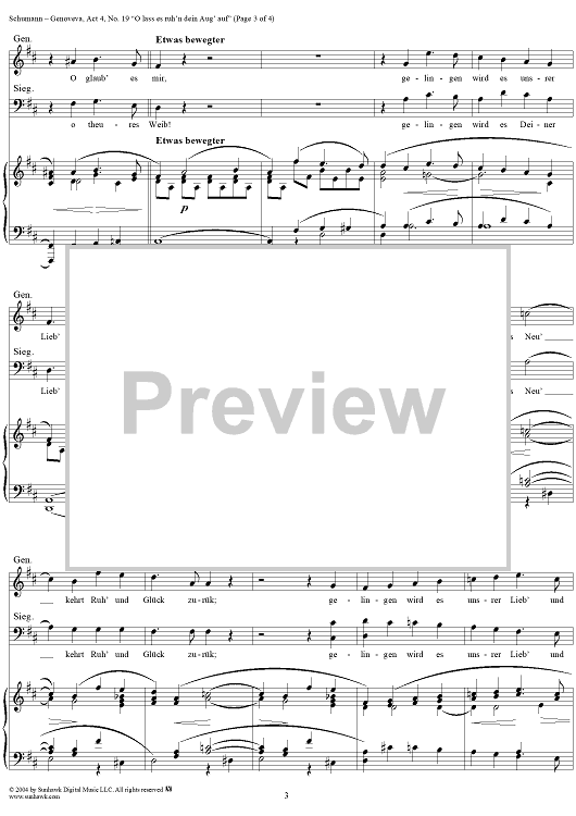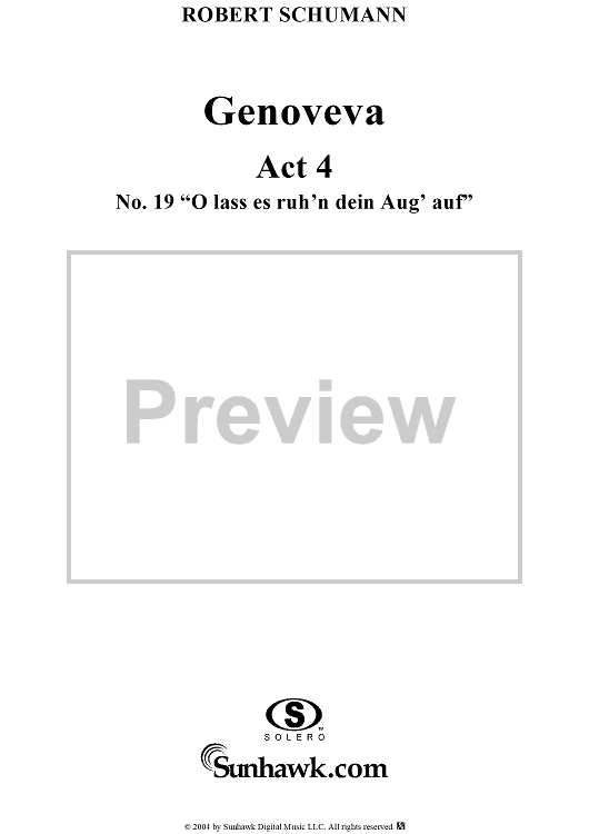 Digital Sheet Music for Genoveva, Op. 81, Act 4, No. 19: "O lass es ruh'n dein Aug'auf" - Score by Robert Schumann scored for Voice/Piano; id:304880