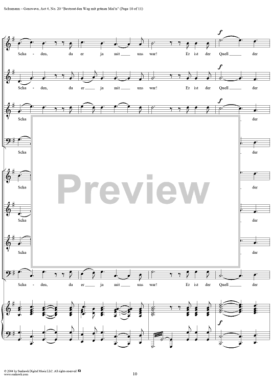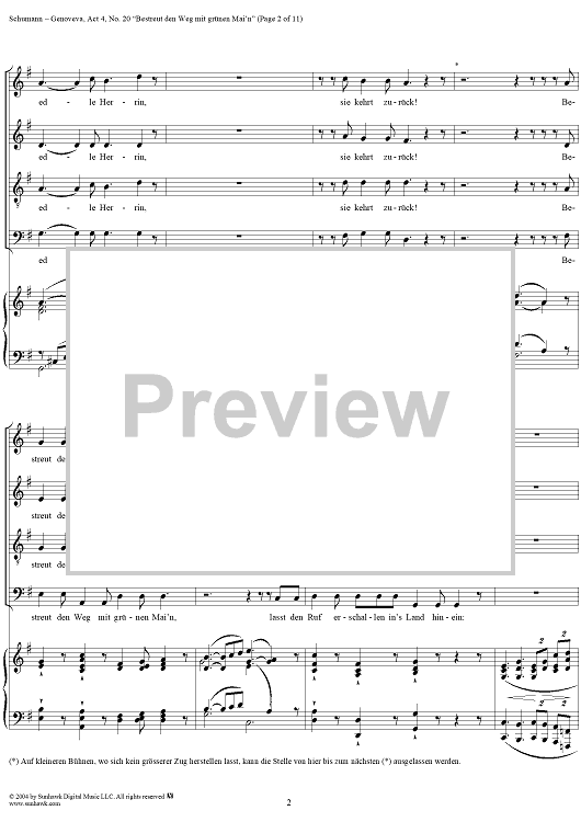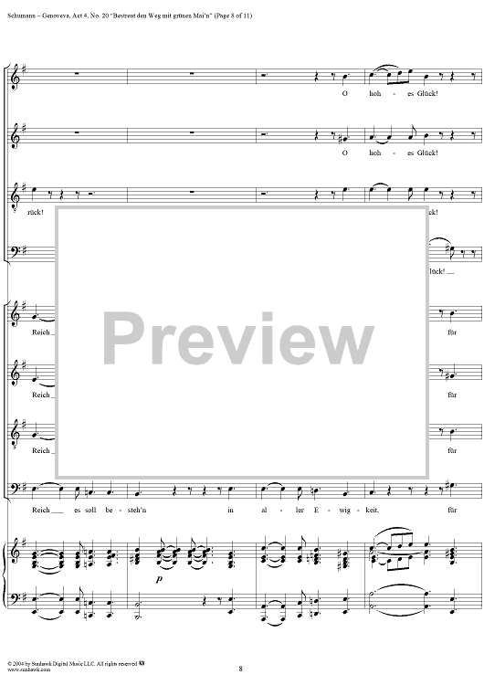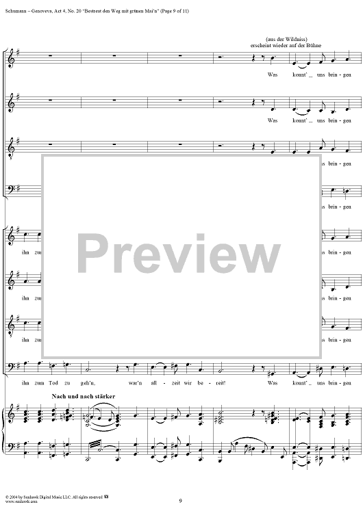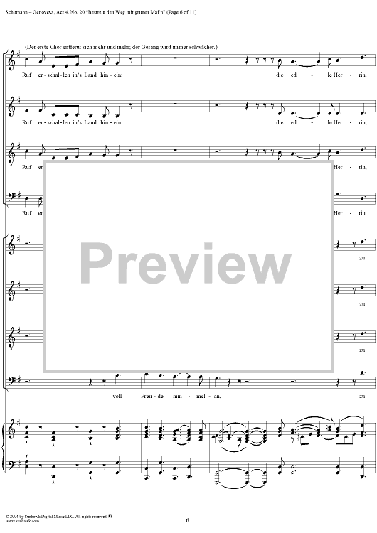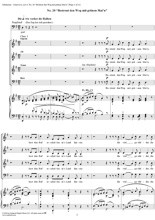 Digital Sheet Music for Genoveva, Op. 81, Act 4, No. 20: "Bestreut den Weg mit grünen Mai'n" - Score by Robert Schumann scored for Voice/Piano; id:304881
