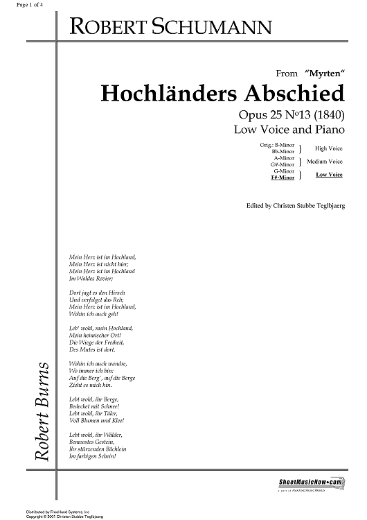 Digital Sheet Music for Hochländers Abschied Op.25 No.13 by , Robert Schumann scored for Alto or Bass/Piano; id:332496