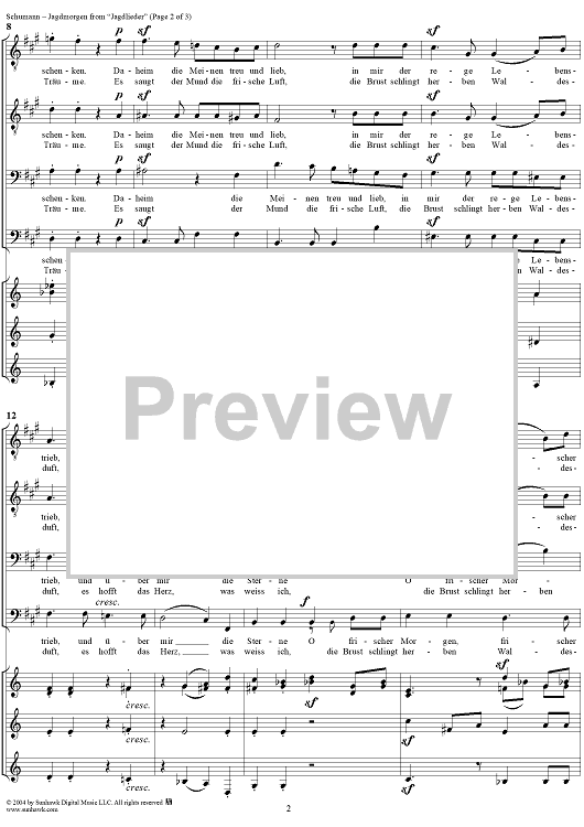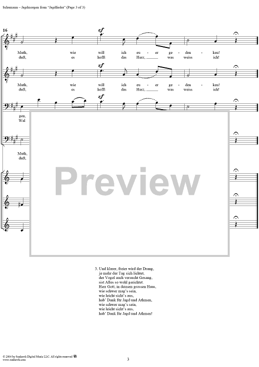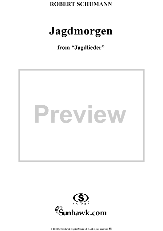 "Jagdmorgen: "O frischer Morgen, frischer Mut", No. 3 from "Jagdlieder", Op. 137" Sheet Music by Robert Schumann