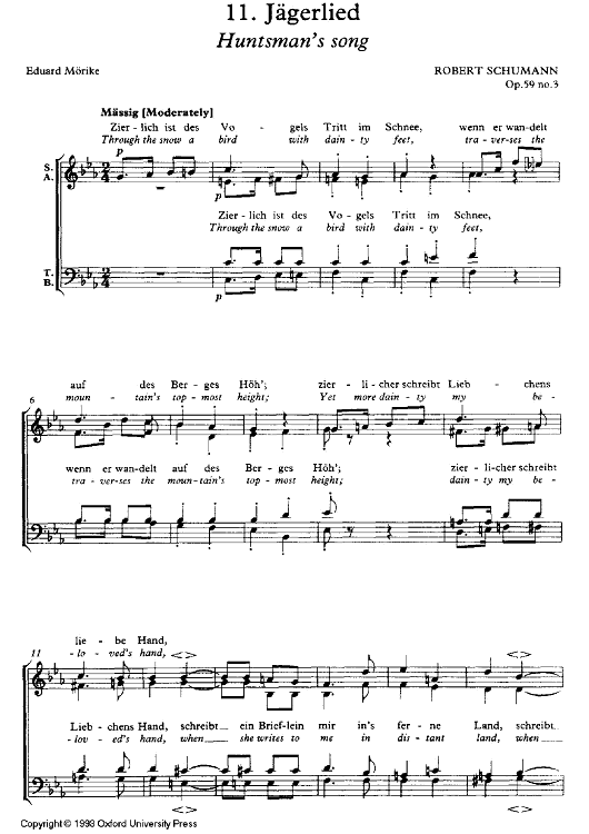 Digital Sheet Music for Jägerlied Op.59 No. 3 by Robert Schumann scored for SATB Choir; id:336801