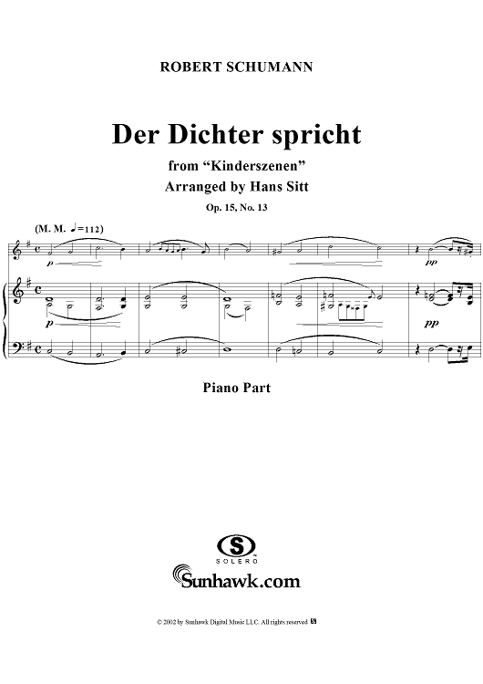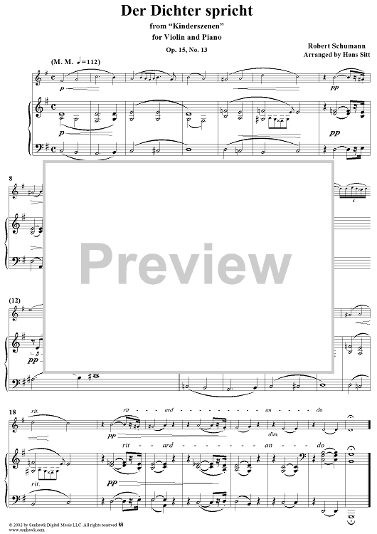 Digital Sheet Music for Kinderszehen, Op. 15, No. 13, "Der Dichter Spricht" (the poet speaks), - Piano by Hans Sitt, Robert Schumann scored for Violin/Piano; id:258578