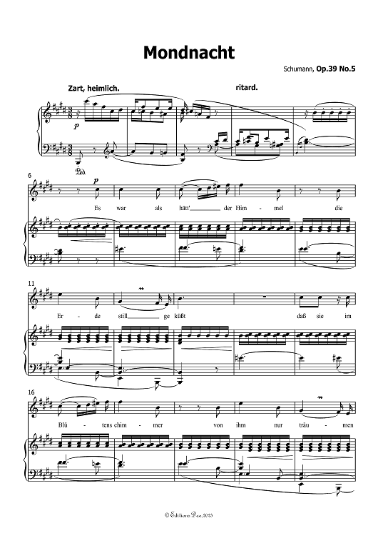 "Mondnacht", Op. 39, No. 5, in E Major, for Voice and Piano