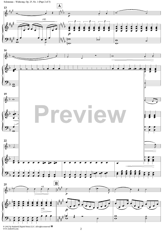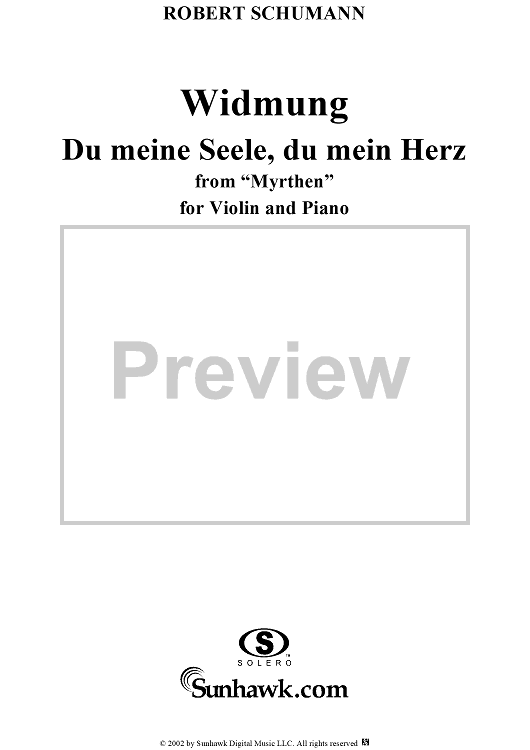 Digital Sheet Music for Myrthen (Song cycle), Op. 25, No. 01, "Widmung" (dedication), - Piano by Hans Sitt, Robert Schumann scored for Violin/Piano; id:258084