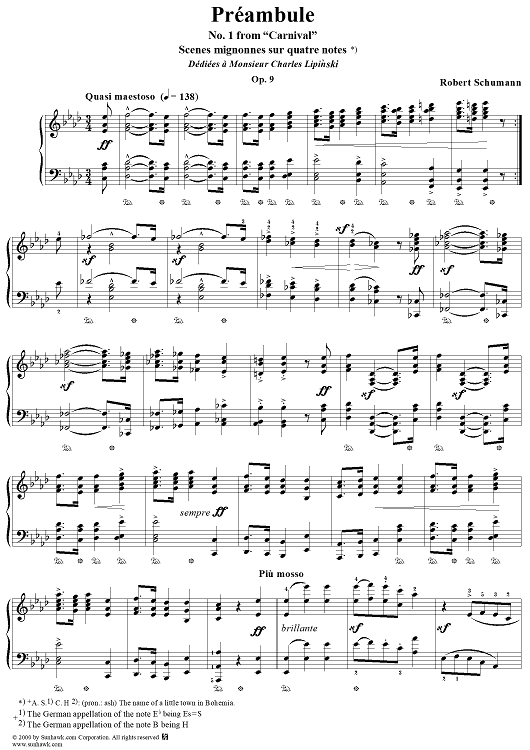 "No. 1: Préambule" Sheet Music by Robert Schumann