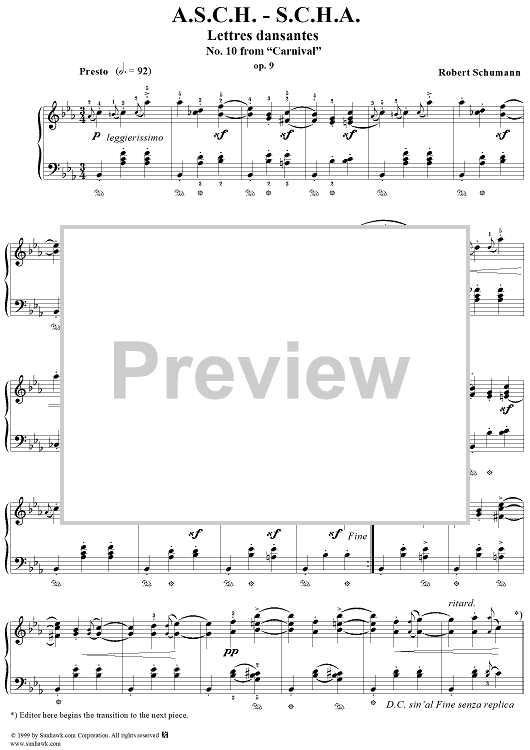 "No. 10: A.S.C.H. - S.C.H.A. (Lettres dansantes)" Sheet Music by Robert Schumann