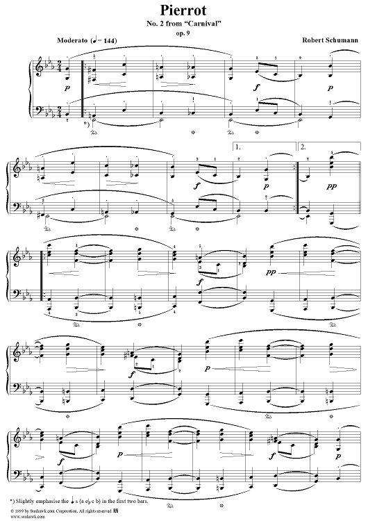 "No. 2: Pierrot" Sheet Music by Robert Schumann