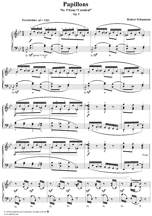 Digital Sheet Music for No. 9: Papillons by Robert Schumann scored for Piano Solo; id:258527