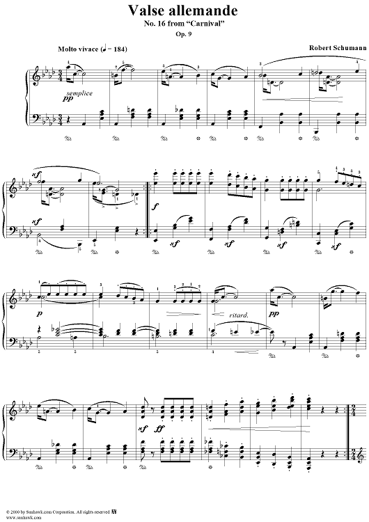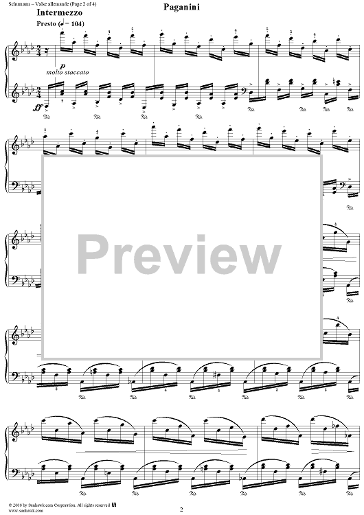 Digital Sheet Music for Nos. 16 & 17: Valse allemande /Paganini by Robert Schumann scored for Piano Solo; id:258502