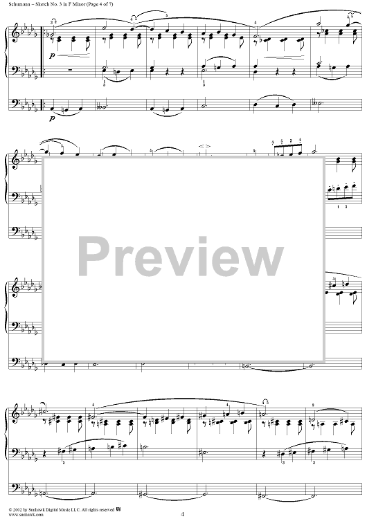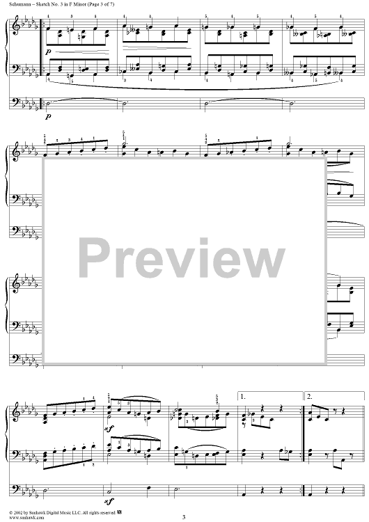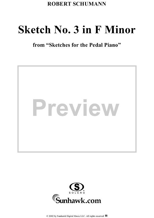 Digital Sheet Music for Sketches for the Pedal Piano, No. 3 in F Minor by Robert Schumann scored for Piano Solo; id:258398