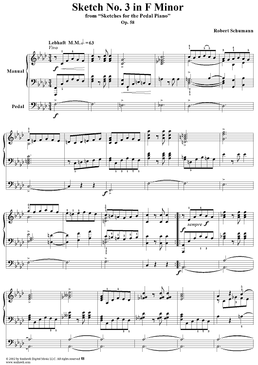 "Sketches for the Pedal Piano, No. 3 in F Minor" Sheet Music by Robert Schumann