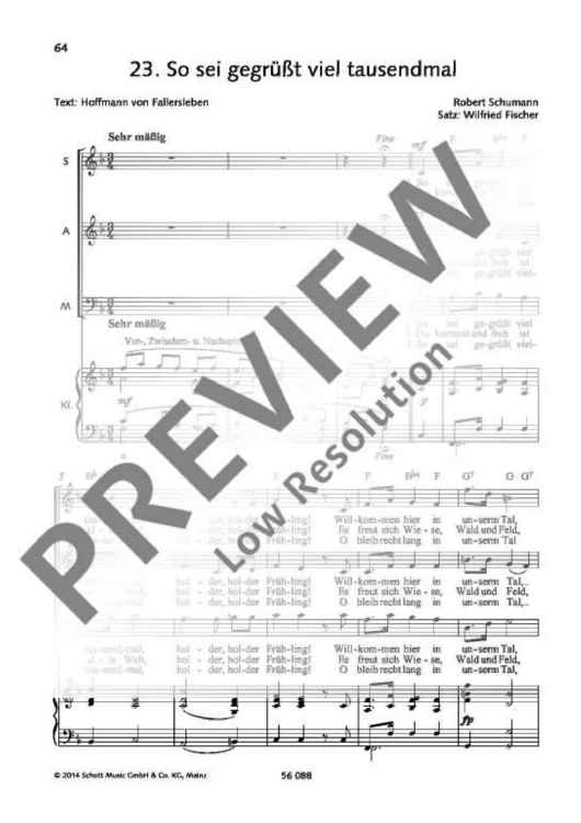 Digital Sheet Music for So sei gegrüßt viel tausendmal by Robert Schumann, Wilfried Fischer scored for Mixed Choir (sabar) And Piano; id:485922