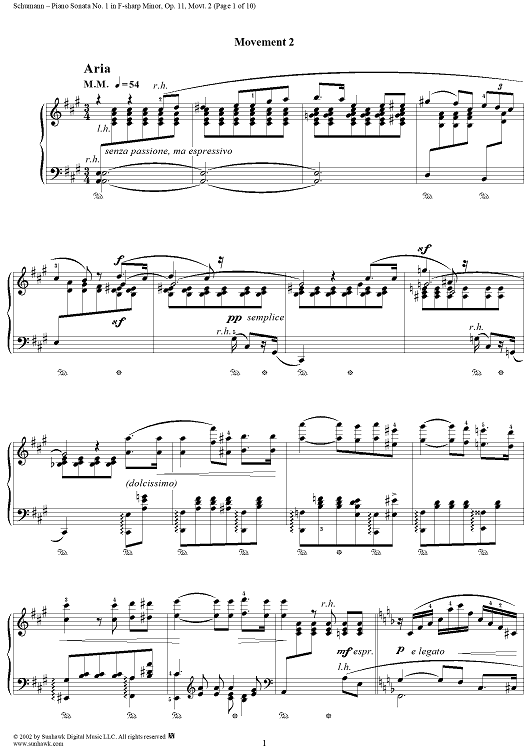 Digital Sheet Music for Sonata No. 1, Movement 2 by Robert Schumann scored for Piano Solo; id:258635