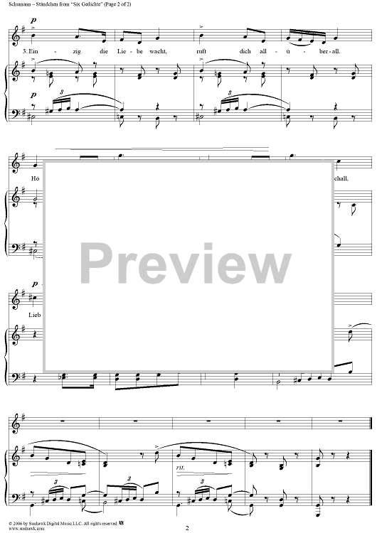 Digital Sheet Music for Ständchen, Op. 36, No. 2 by Robert Schumann, Reinick scored for Voice/Piano; id:316329