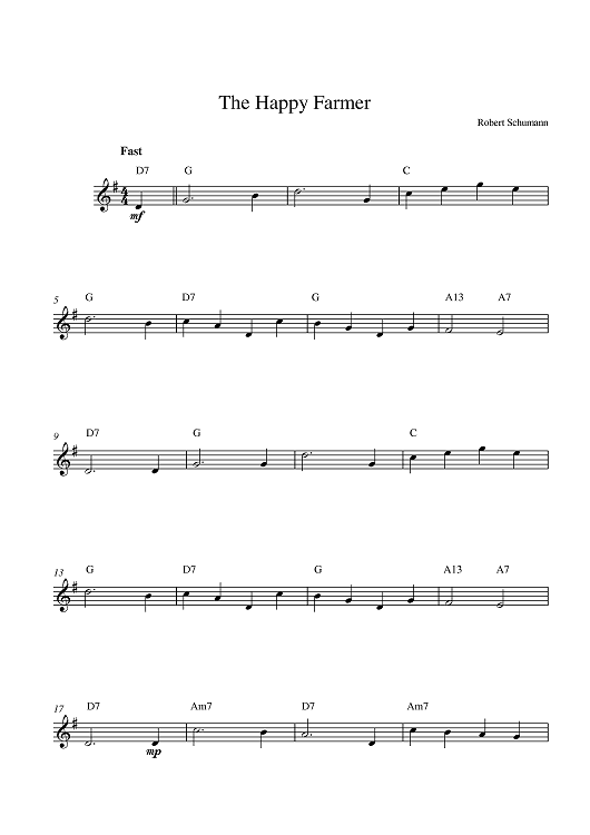 Digital Sheet Music for The Happy Farmer by Robert Schumann scored for Lead Sheet; id:380923