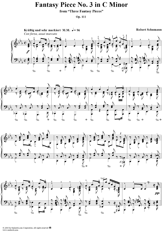 Digital Sheet Music for Three Fantasiestücke, No. 3 in C Minor by Robert Schumann scored for Piano Solo; id:258240