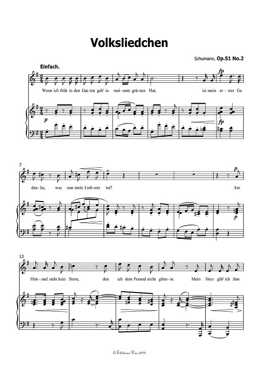 "Volksliedchen", Op. 51, No. 2, in G Major, for Voice and Piano