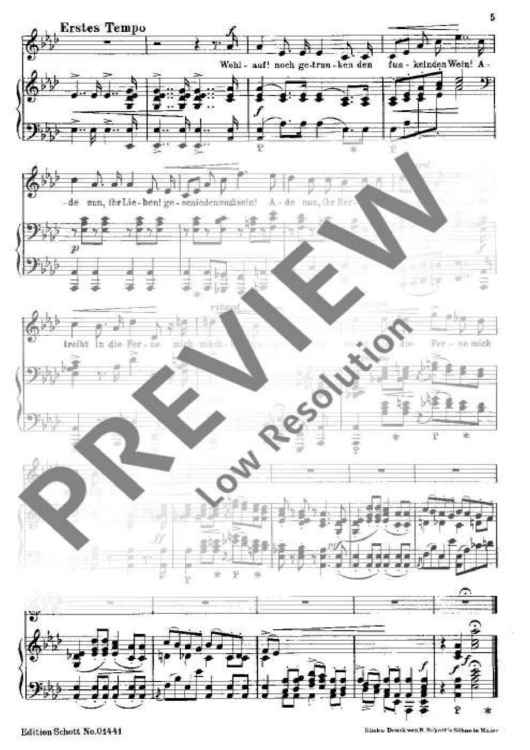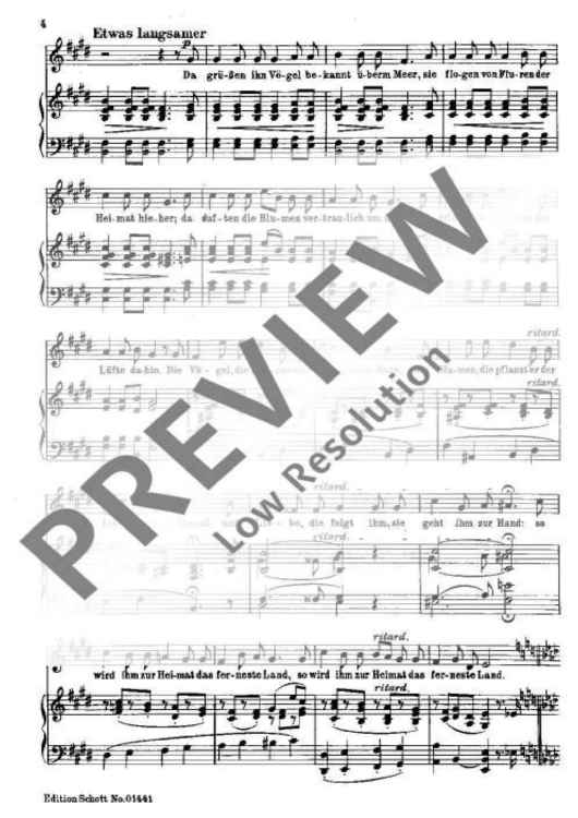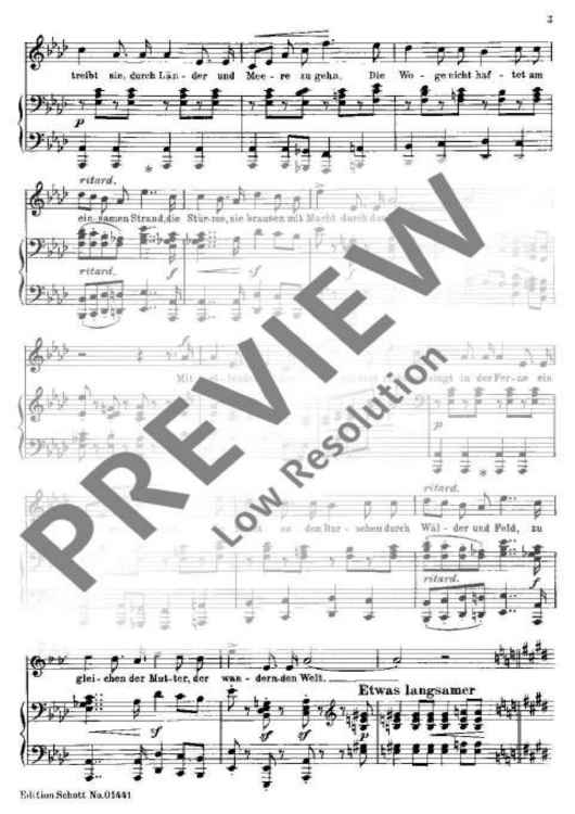 Digital Sheet Music for Wanderlied in E major by Robert Schumann scored for Medium Voice And Piano; id:482425