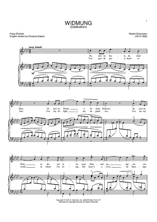 Digital Sheet Music for Widmung by Robert Schumann, Franz Ruckert scored for Piano/Vocal/Chords; id:374973