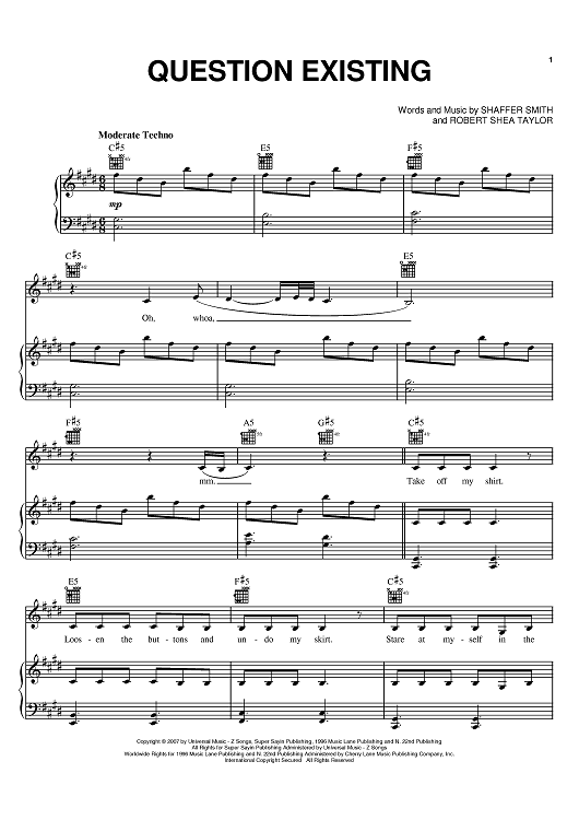 Digital Sheet Music for Question Existing by Ne-Yo, Rihanna, Robert Shea Taylor scored for Piano/Vocal/Chords; id:402842