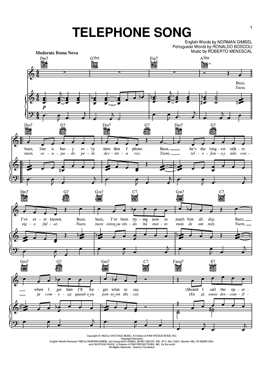 Digital Sheet Music for Telephone Song by Norman Gimbel, Astrud Gilberto, Roberto Menescal, Ronaldo Boscoli scored for Piano/Vocal/Chords; id:383168