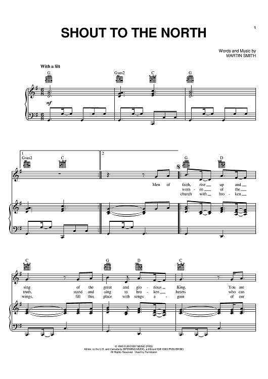 Digital Sheet Music for Shout To The North by Martin Smith, Robin Mark scored for Piano/Vocal/Chords; id:402863