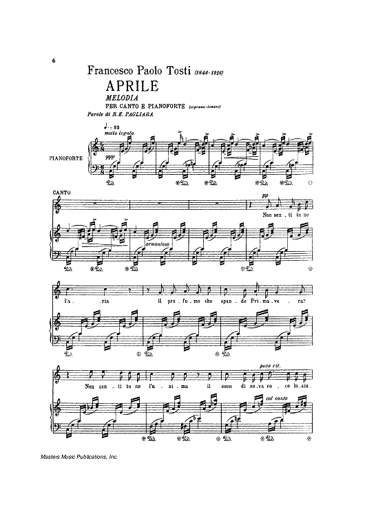Digital Sheet Music for Aprile by Rocco Emanuele Pagliara, Francesco Paolo Tosti scored for Piano/Vocal; id:444596