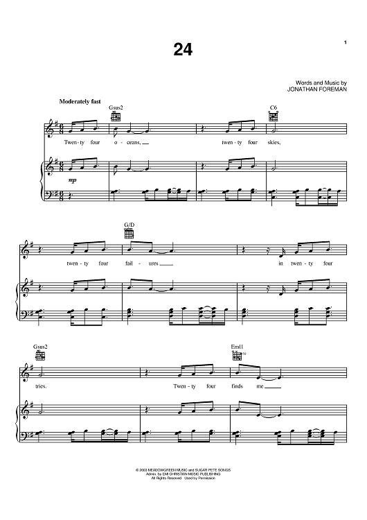 Digital Sheet Music for 24 by Jonathan Mark Foreman, Switchfoot scored for Piano/Vocal/Chords; id:372026
