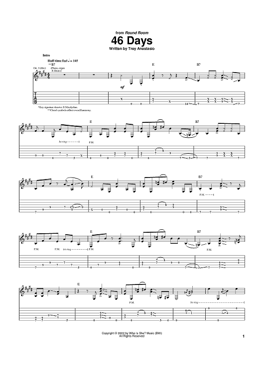 Digital Sheet Music for 46 Days by Trey Anastasio, Phish scored for Guitar Tab; id:372662