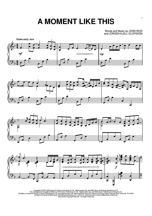 "A Moment Like This" Sheet Music by Kelly Clarkson
