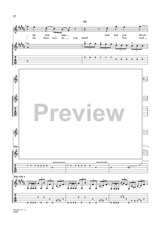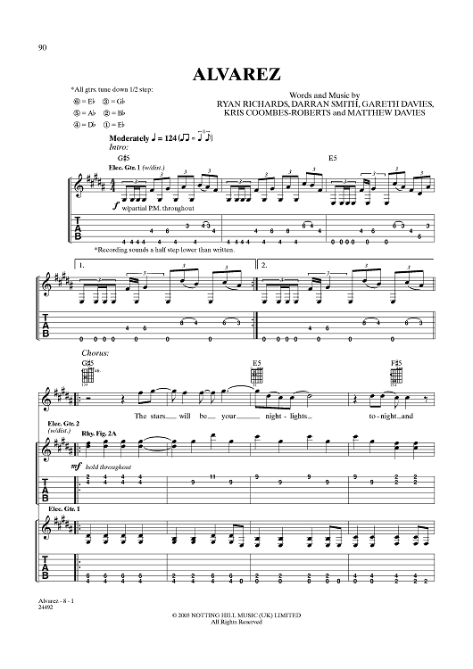 Digital Sheet Music for Alvarez by Funeral for a Friend, Ryan Richards, Darran Smith, Gareth Davies, Kris Coombes-Roberts, Matthew Davies scored for Guitar Tab/Vocal; id:359900