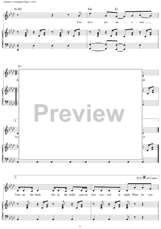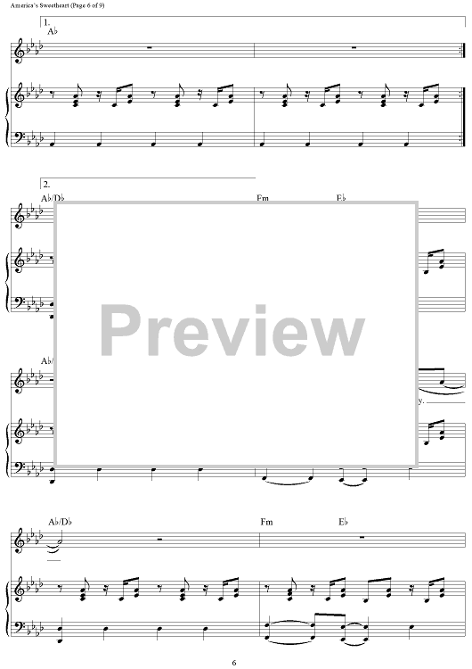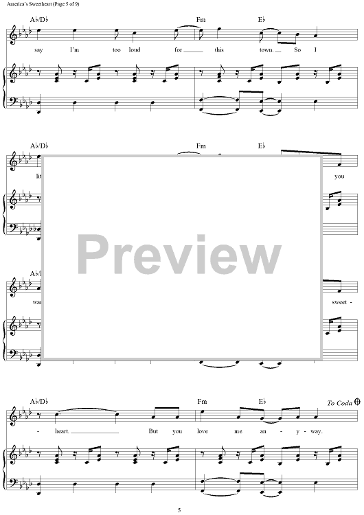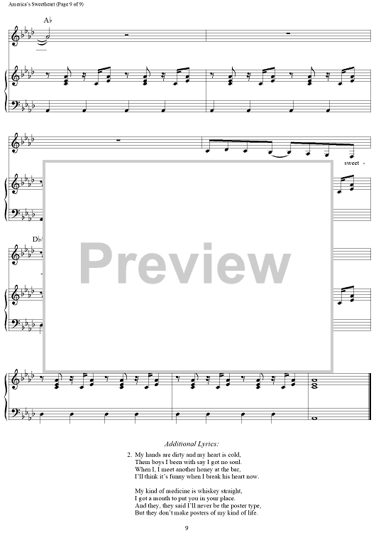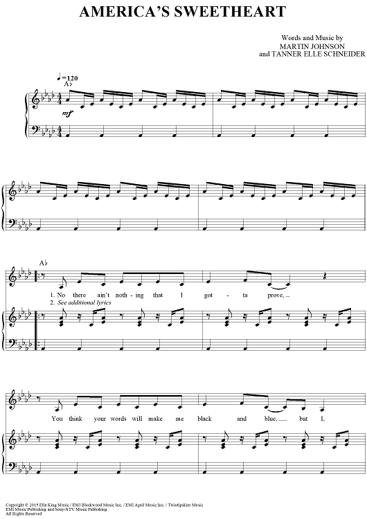 Digital Sheet Music for America's Sweetheart by Martin Johnson, Tanner Schneider, Elle King scored for Piano/Vocal/Chords; id:458240