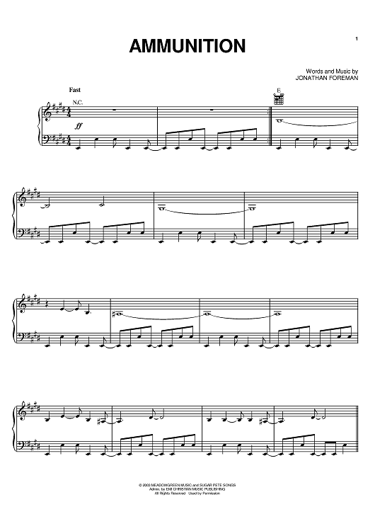Digital Sheet Music for Ammunition by Jonathan Mark Foreman, Switchfoot scored for Piano/Vocal/Chords; id:372020
