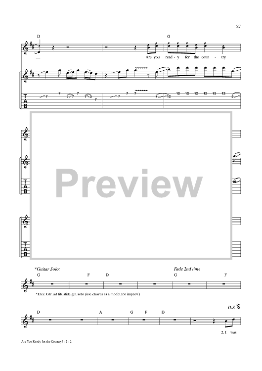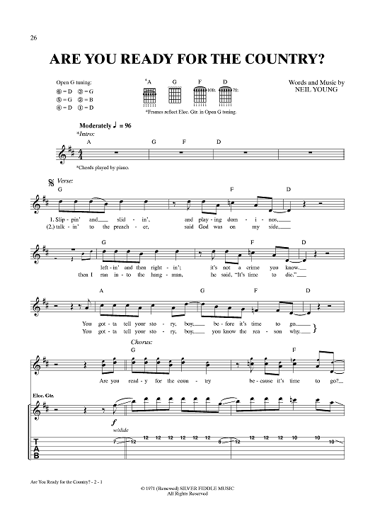 Digital Sheet Music for Are You Ready For the Country? by Neil Young scored for Guitar Tab/Vocal; id:359897